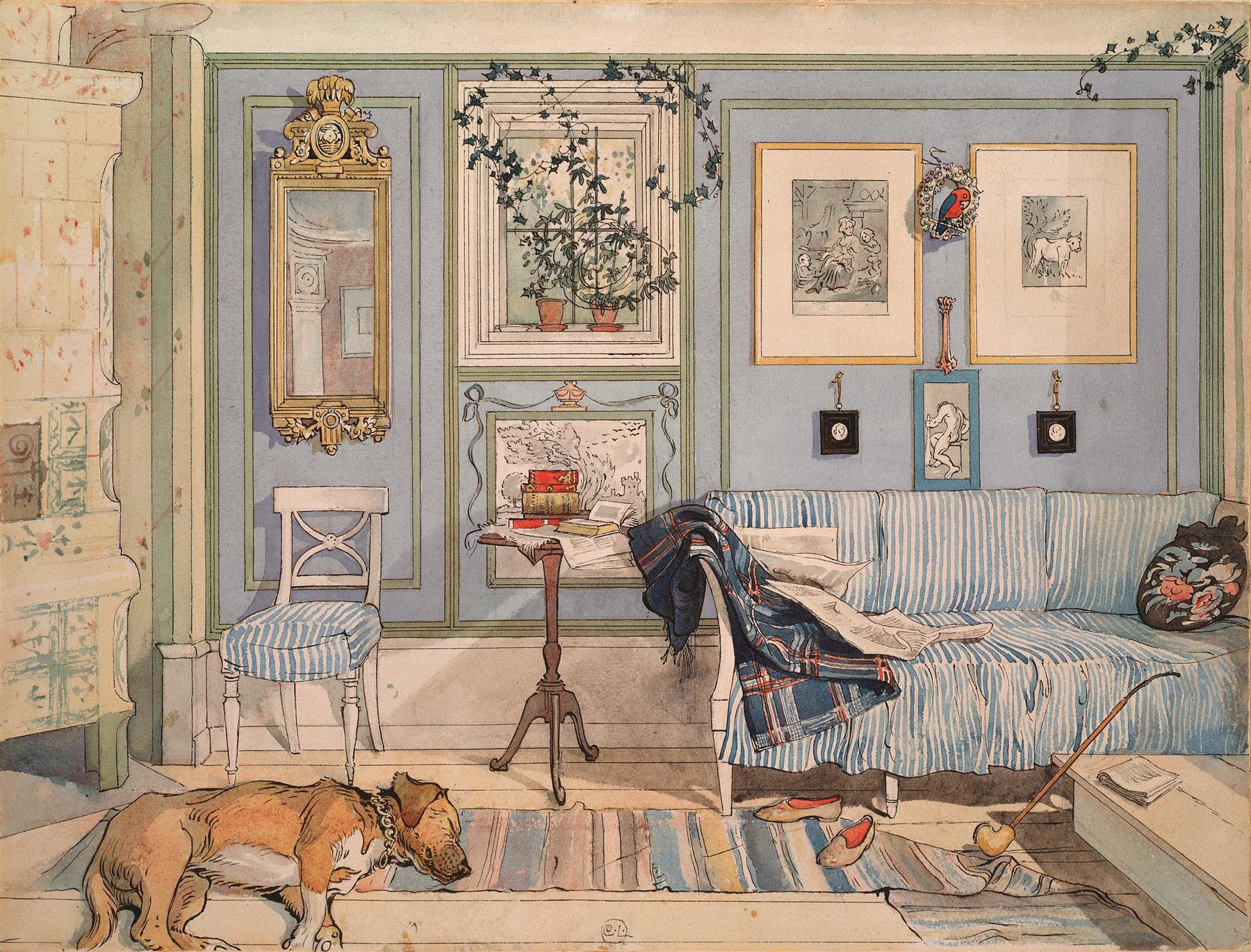 Beyond the blankets and books, Merlin’s owner must of drifted off too and got up in a hurry as his pipe and slippers can be seen scattered across the floor! This humble home has a stunning collection of art on the wall which makes it an idyllic image to piece together.