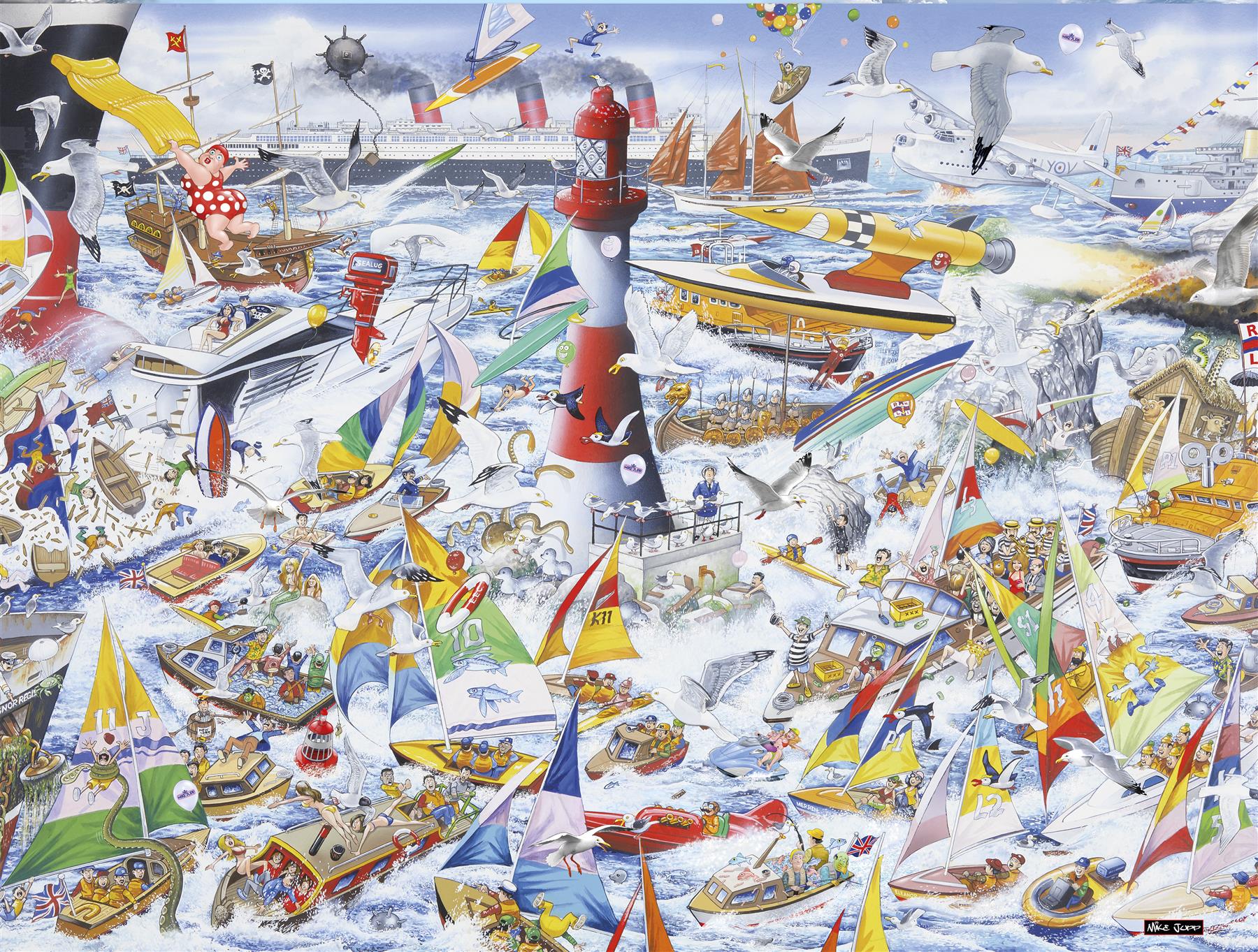 ‘I Love Boats’ is a charmingly chaotic 1000-piece jigsaw puzzle from the amazing mind of Mike Jupp.