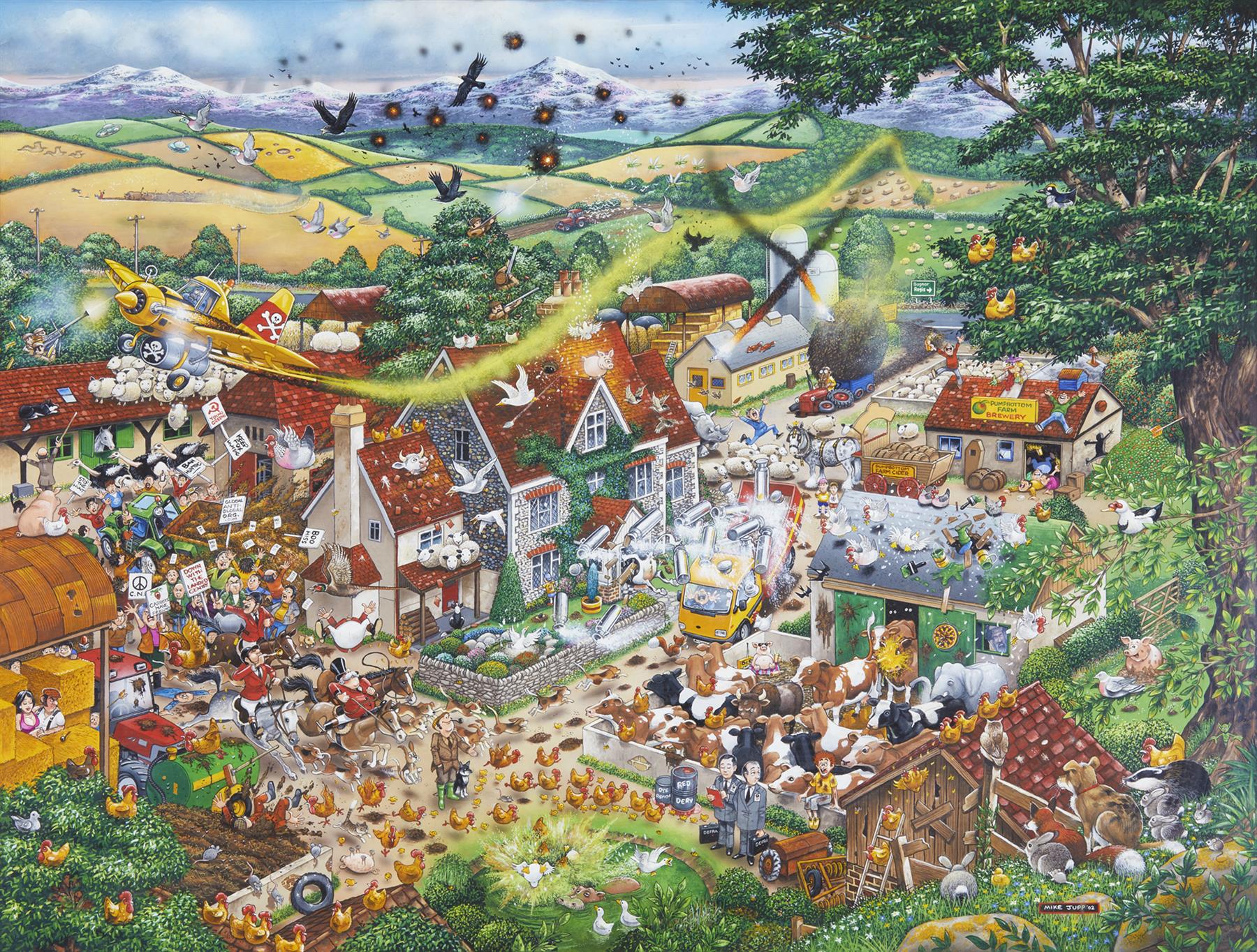 Can you spot a few familiar faces that Mike has dotted amongst his cast of crazy characters? Everything we love about farming has been crammed into this chaotic scene, you’ll be crying with laughter as you look for them all!