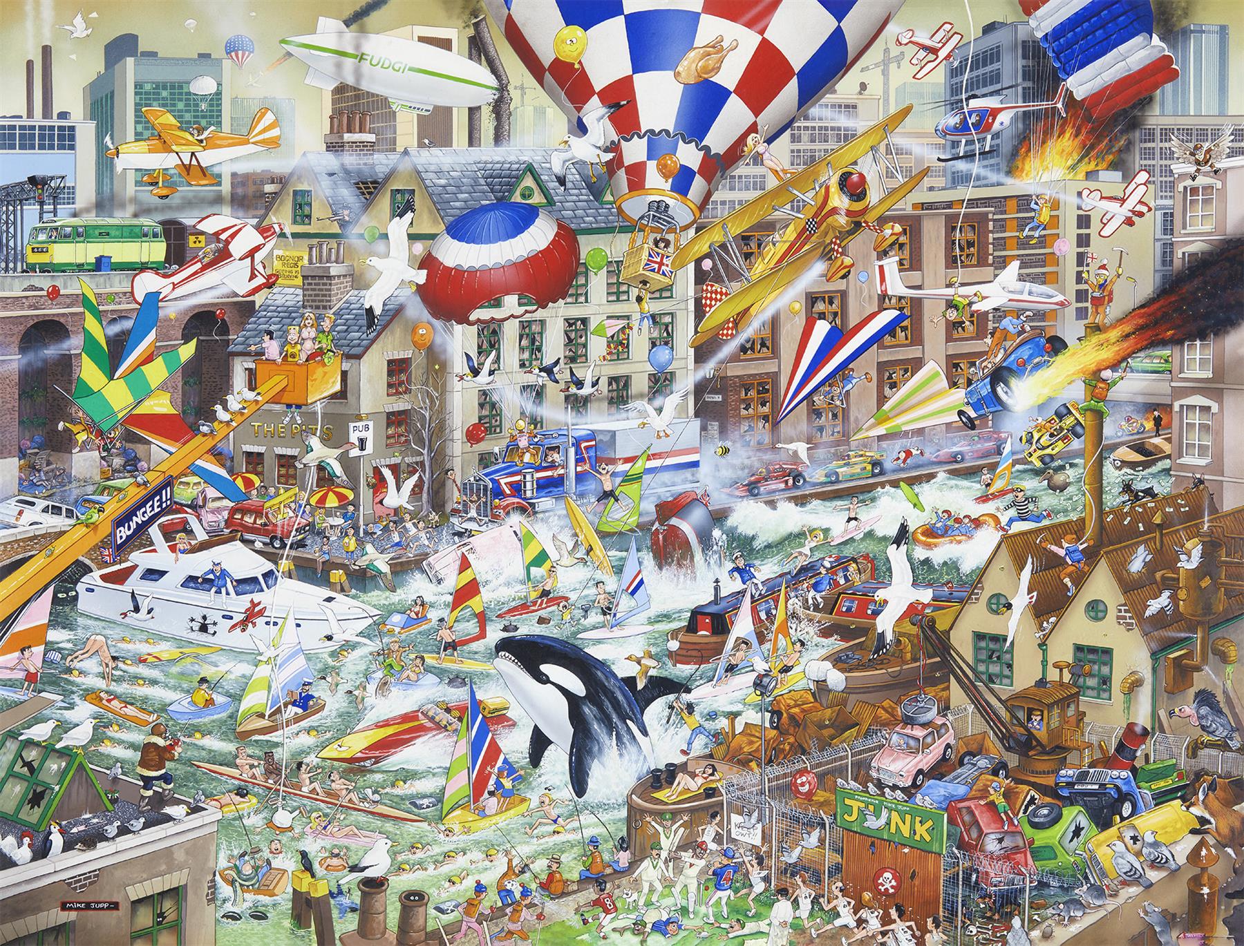 Mike Jupp is one of the most beloved jigsaw puzzle artists in the world and his comical creations have been delighted puzzlers for year. Having started in advertising, Mike moved into animation where he created such greats as ‘No Man’s Valley’, ‘The Bluffers’ and the classic ‘The Dream Stone’. Now we’re delighted that this amazing artist has brought his unique sense of humour to the AJP family.