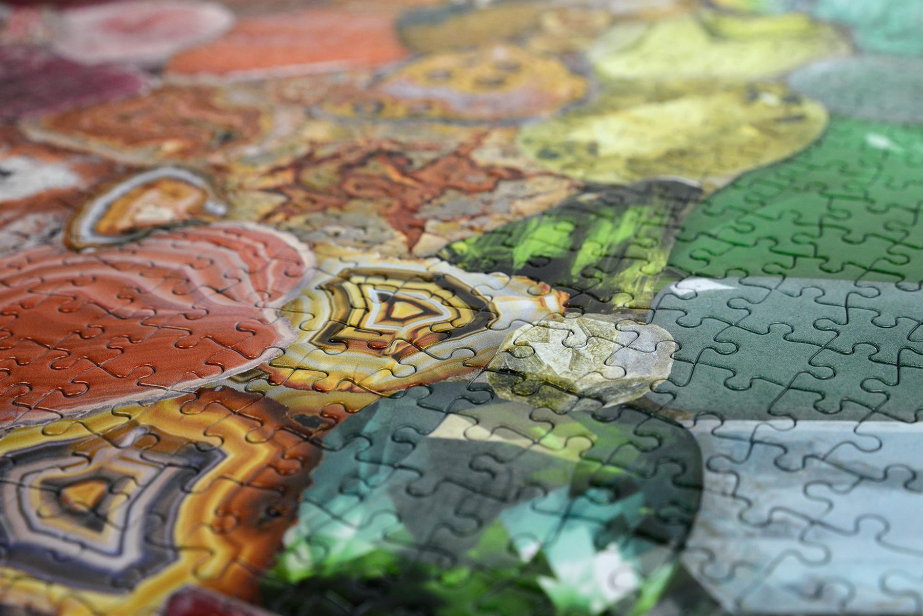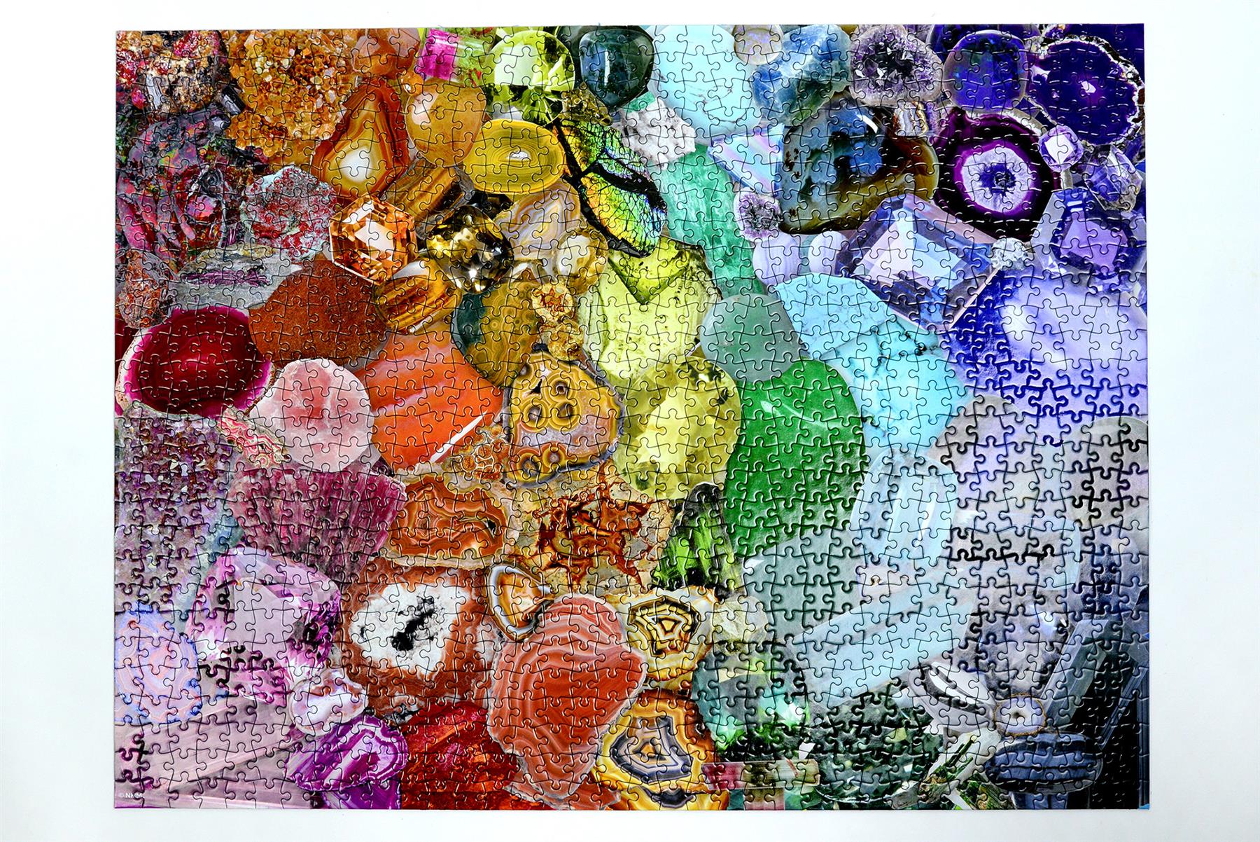 See all the colours of the rainbow come to life as you assemble stunning specimens of nature such as Turquoise, Rose quartz, agate, onyx and jasper, to name a few. Piece together some precious stones and watch the sparkle of light and hue shine through. Transform your table in to spectrum of nature with this mesmerising mineral jigsaw puzzle. A complete gem to puzzle!